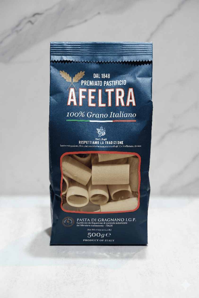 Authentic bronze-extruded Italian pasta from Gragnano, made with 100% Italian wheat and slow-dried for up to 60 hours.