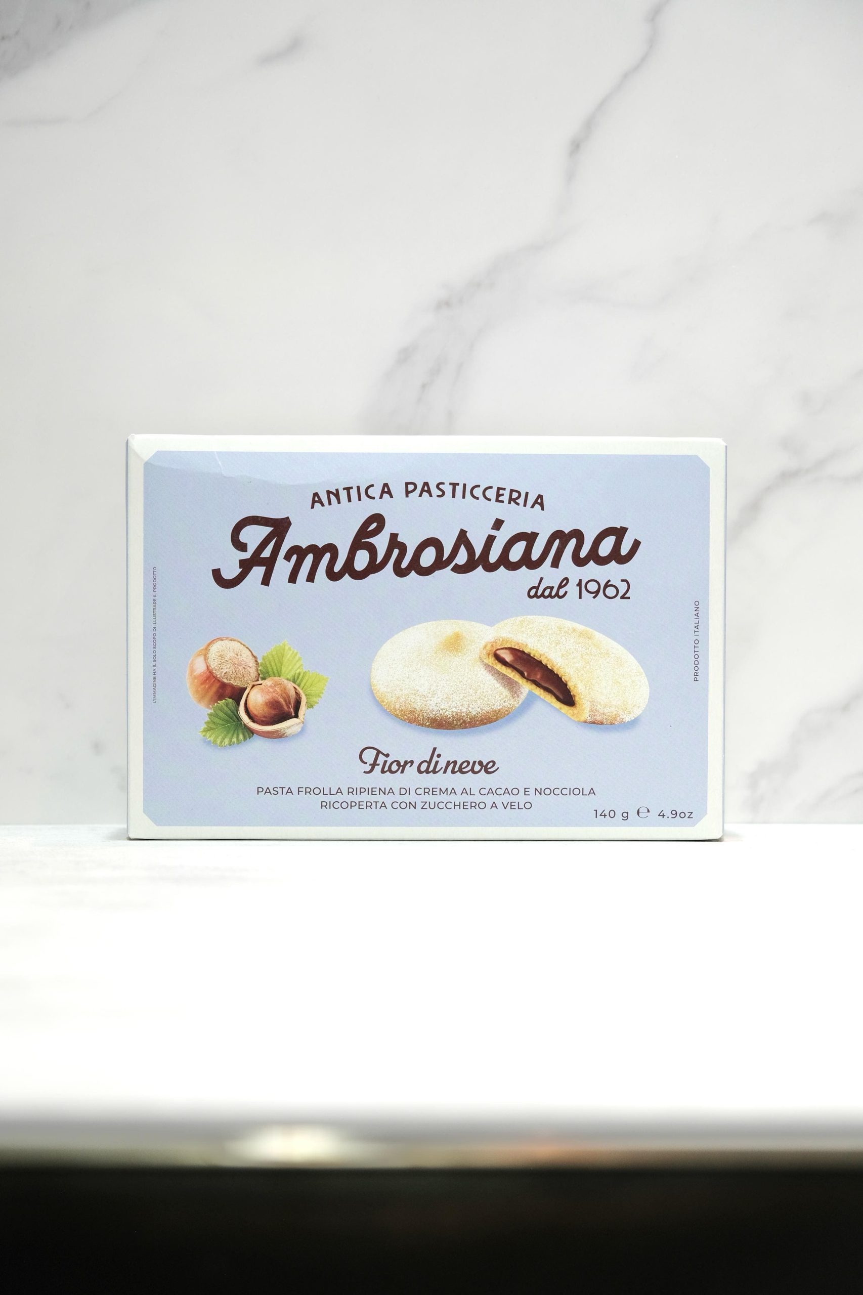 Soft shortcrust cookies filled with hazelnut and cocoa cream, finished with a dusting of powdered sugar