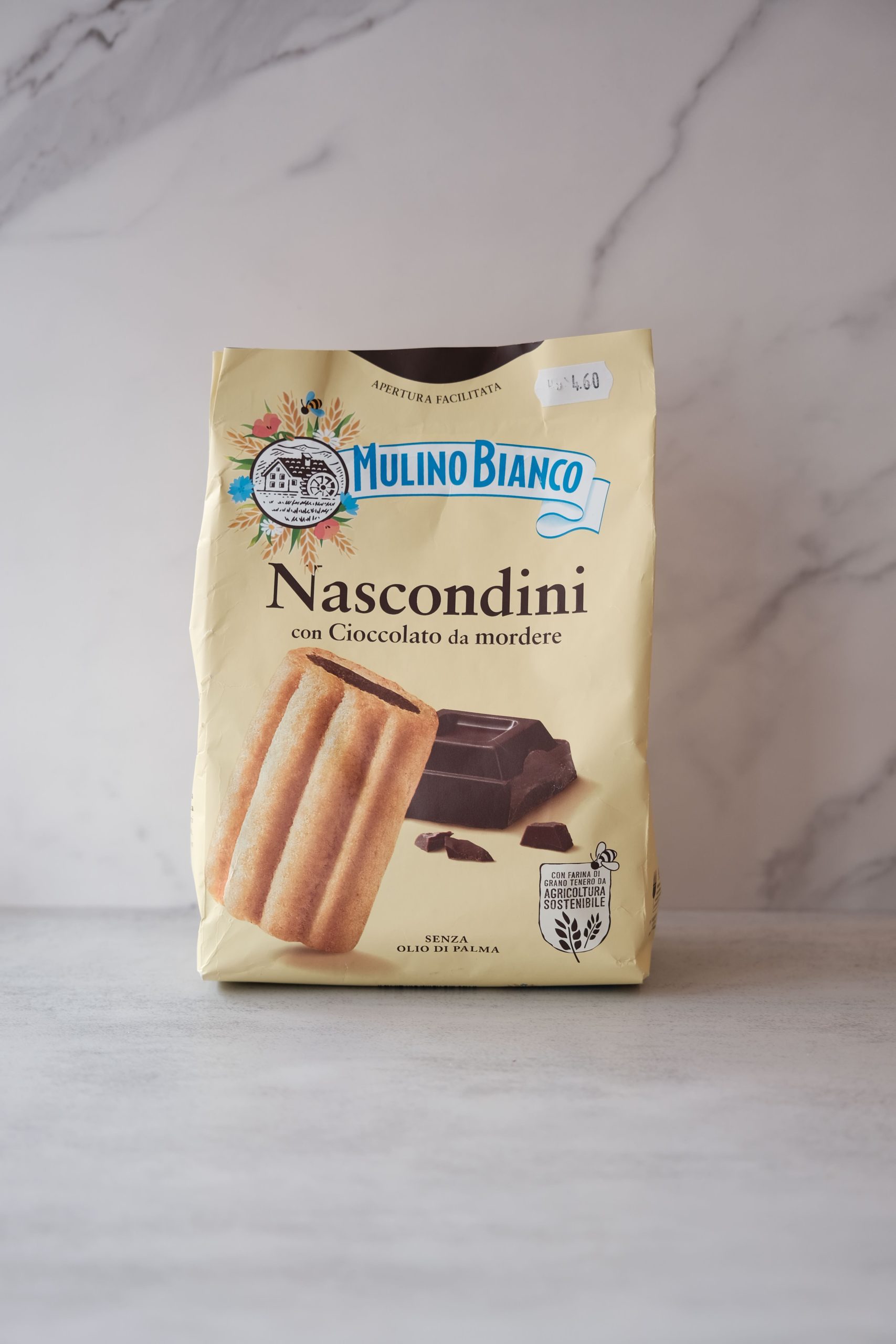Crunchy shortbread biscuits that conceal a solid dark chocolate core designed for biting