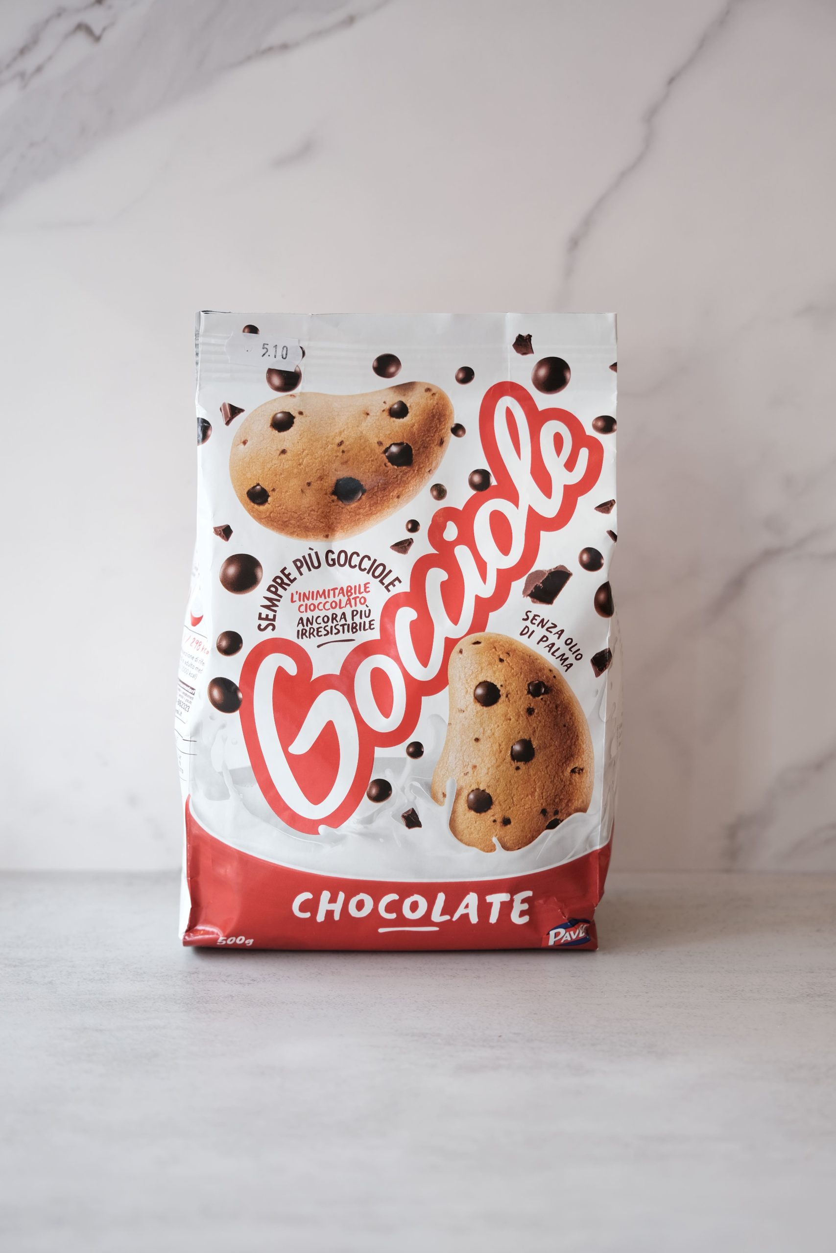 Shortbread biscuits featuring a teardrop shape and high-quality chocolate drops, made without palm oil