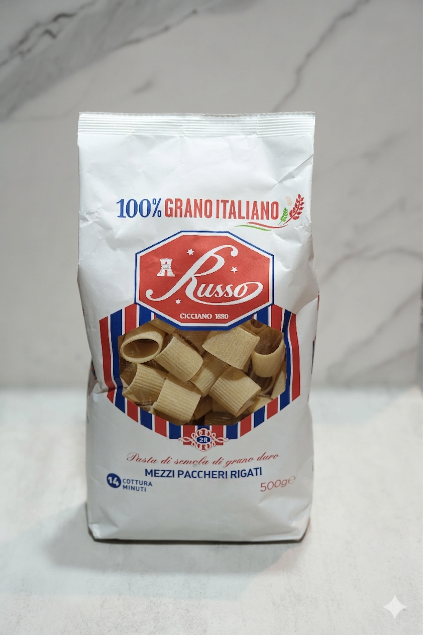 Russo Cicciano Mezzi Paccheri Rigati 100% Grano Italiano